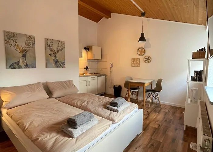 В распоряжении гостей мини-кухня с электрочайником, холодильником и стеклянной посудой. В апартаментах доступна кофеварка, что обеспечивает гостям комфортное пребывание. На расстоянии 5-минутной прогулки находится ресторан Cafe Einstein, где гостей ожидают блюда европейской кухни. Ближайшая автобусная остановка Rheinstrasse/Fahre находится всего в 200 метрах.